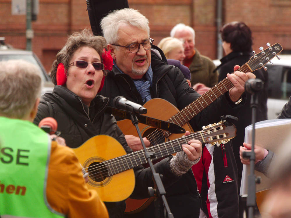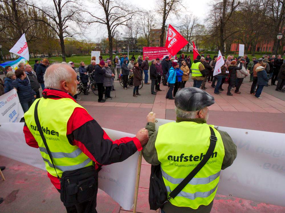 Am 13. April 2019 fand in Potsdam der Ostermarsch statt, organisiert unter anderem von der Landesgruppe und Regionalgruppe von Aufstehen, zwei Kreisverbänden von Die Linke, dem Aktionsbündnis Potsdam gegen Hartz IV, dem brandenburgischen Freidenker-Verband sowie regionalen Gruppierungen von DKP, LAG, RotFuchs-Förderverein und Mütter gegen den Krieg. Es sprachen unter anderem Dieter Dehm (Die Linke, MdB), Stefanie König (DKP) und Harald Neuber (Aufstehen). Die Fotos zeigen die Rednerinnen und Redner, Sängerinnen und Sänger sowie die Demonstrierenden bei den Kundgebungen und während des Marsches.